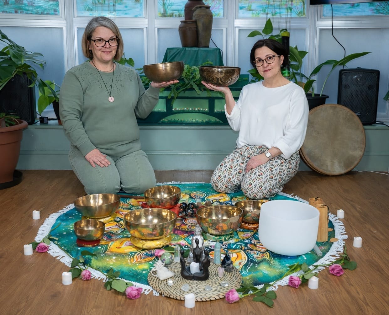 * group sound bath sessions with Tibetan singing bowls and other instruments